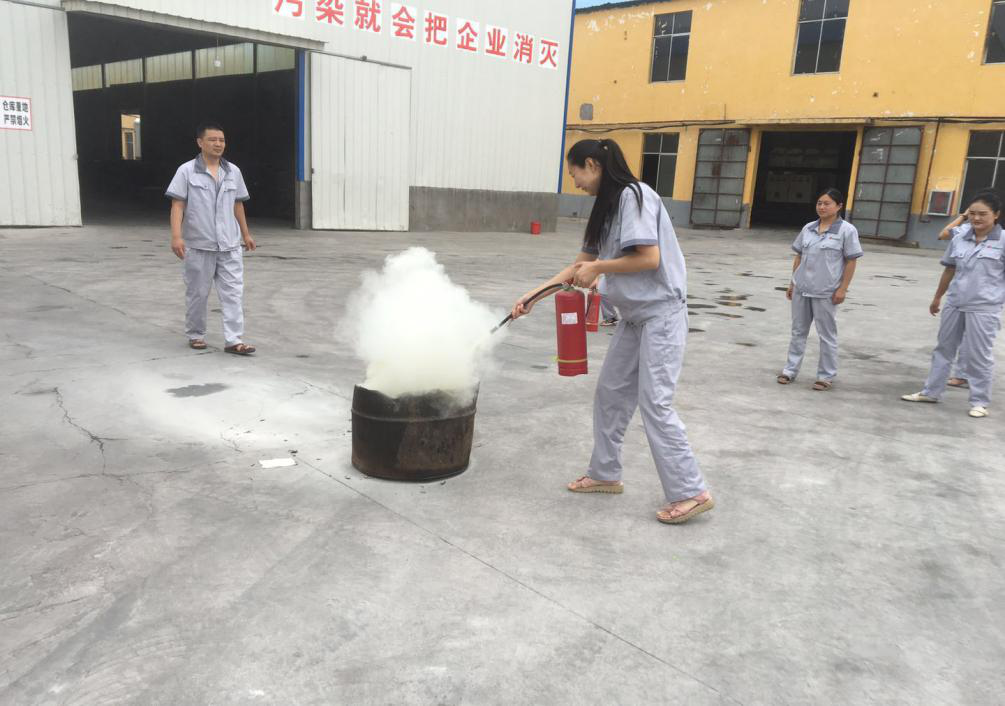 7月9号上午8时00分,天气晴好,风力不大,根据事先安排,由安全员大声喊,成品库房外有起火,快速施救,听到喊声,机关人员立即放下手中工作,跑到失火地方,按平时教育分工,用干粉灭火器灭火,员工按平时学习的使用方法,快速做到灭火,演练比较成功,队员仅用5分钟即赶到现场,10分钟演习结束。